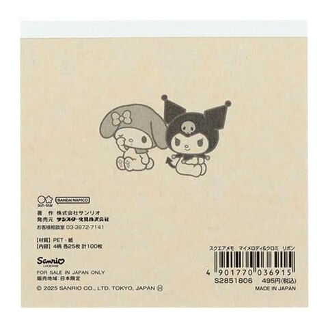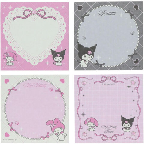 マイメロディ&クロミ スクエアメモ リボン 4柄×各25枚 PET表紙 ピンク ハート 周年 人気 かわいい サンスター文具