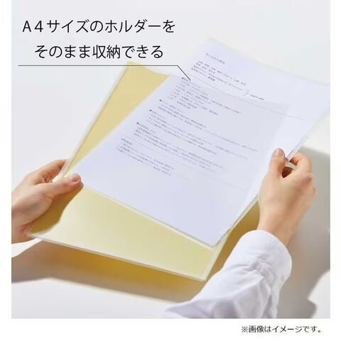 マチ付きでA4コピー用紙を最大100枚収納可能と収納力も抜群です。丈夫なつくりで、たくさん収納しても型崩れしにくいのもポイント。また通常のホルダーより一回り大きいサイズでクリアーホルダーもそのまま入れられます。