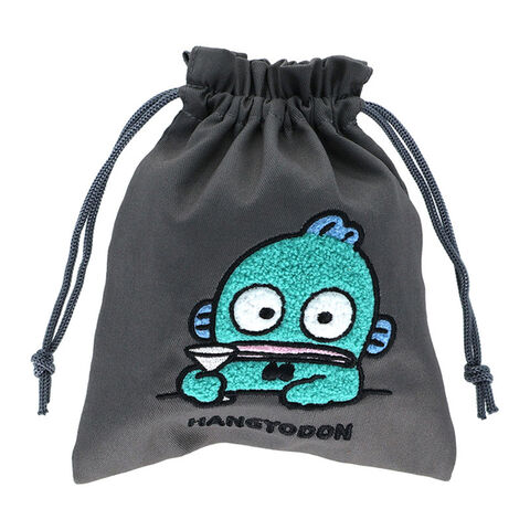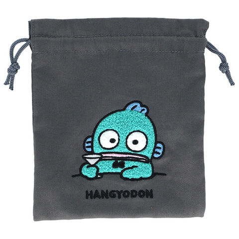 ハンギョドン サガラ刺繍 巾着袋 グレー ふわふわ 小物入れ かわいい サンリオ サンスター文具