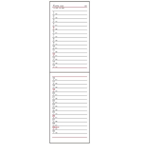 縦開き・薄くて軽いので持ち運びに便利!連続する予定が書きやすく、一覧しやすい月間予定表です。簡単に予定を管理したい、連続した長期の予定が多い方におすすめです。