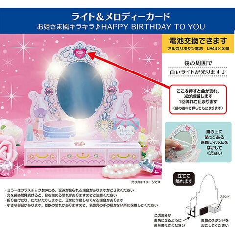 グリーティングカード 誕生日祝い ライト&メロディー ドレッサー 姫 プリンセス バースデー 封筒付 立体 サンリオ