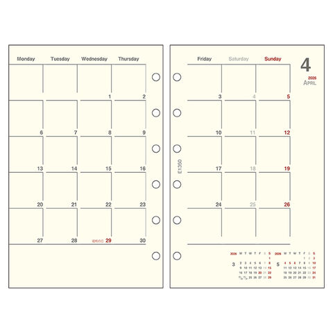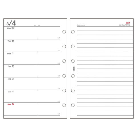 ダイゴー 2026年 手帳・ダイアリー システム手帳リフィル ミニサイズ6穴 1ヶ月ブロック 1週間+横罫