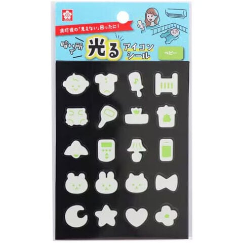 【1000円以上お買い上げで送料無料♪】暗い所で光る アイコンシール ベビー 20柄入 約3~4時間発光 蓄光 家事が楽になるシリーズ 寝かしつけ 子育て サクラクレパス - メール便発送