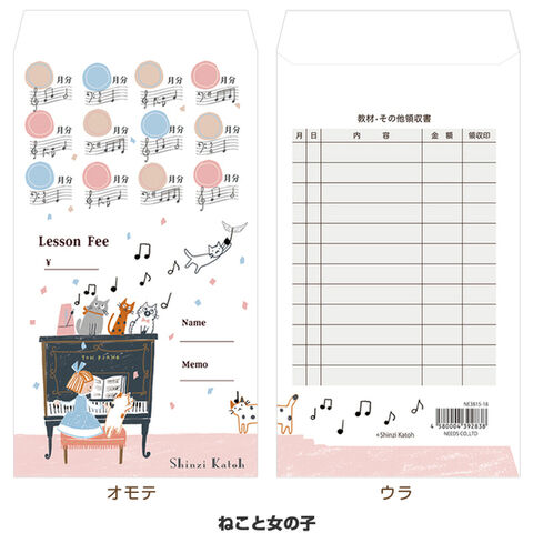 【送料無料】【5柄×各5枚】 月謝袋 ピアノと女の子 計25枚セット ピアノ レッスン 集金 かわいい 習い事 家計簿 お金 管理 封筒 - メール便発送