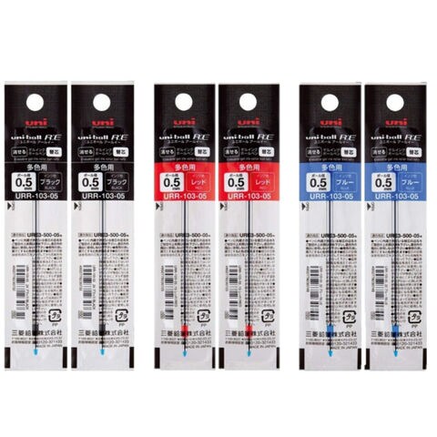 【1000円以上お買い上げで送料無料♪】まとめ買い 3色 6本セット 三菱鉛筆 消せる3色ボールペン替芯 ユニボール 0.5mm ブラック2本 レッド2本 ブルー2本 - メール便発送