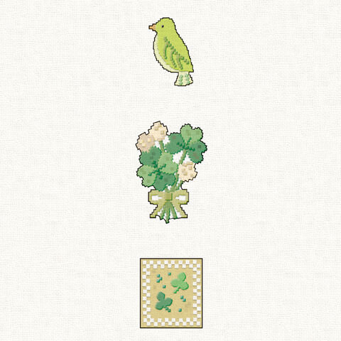 【1000円以上お買い上げで送料無料♪】クロスステッチシール 鳥とクローバー とり グリーン 刺繍風 ステッカー デコレーション 手帳 かわいい カミオジャパン - メール便発送