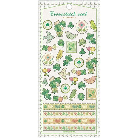 クロスステッチシール 鳥とクローバー とり グリーン 刺繍風 ステッカー デコレーション 手帳 かわいい カミオジャパン