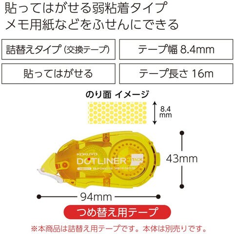 【送料無料】10個セット コクヨ テープのり ドットライナー 貼ってはがせる 弱粘着 詰め替えテープ - メール便発送