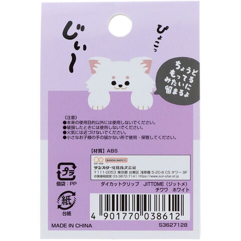 【1000円以上お買い上げで送料無料♪】ダイカットクリップ JITTOME ジットメ イヌ柄 チワワ ホワイト 犬 半立体 紙留め かわいい サンスター文具 - メール便発送