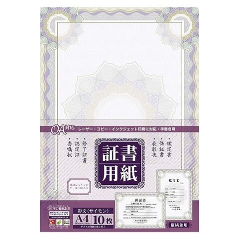 【1000円以上お買い上げで送料無料♪】タカ印 証書用紙 A4判 彩紋 - メール便発送