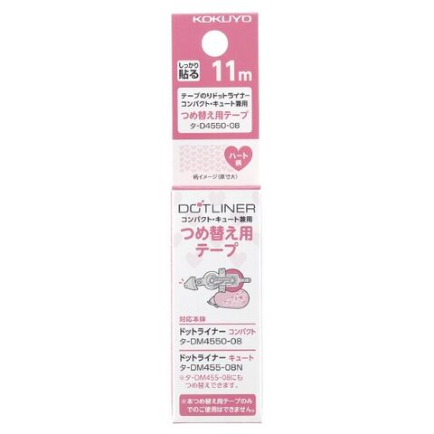 【1000円以上お買い上げで送料無料♪】コクヨ テープのり ドットライナーコンパクト つめ替え用テープ ハート タ-D4550-08 - メール便発送