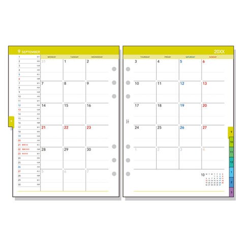【レイアウト】見開き両面1ヵ月ブロック式 マンスリー 月間 ブロック