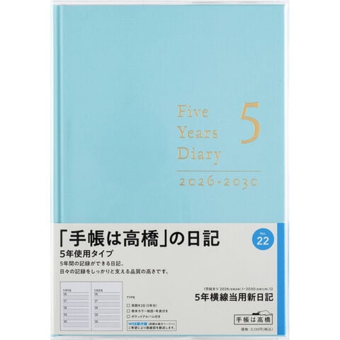 【送料無料】高橋書店 2026年 手帳・ダイアリー (22) 5年横線当用新日記 A5 ミントブルー 見開き2日5年分 - メール便発送