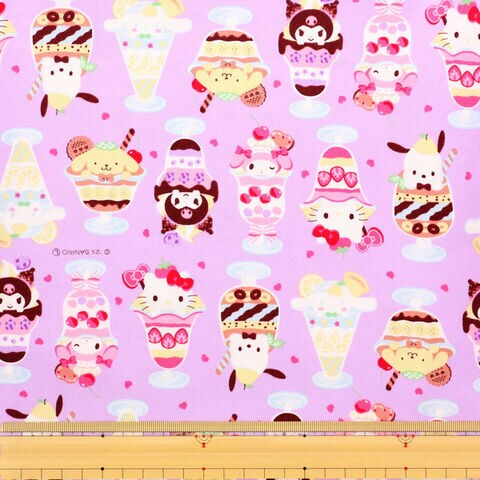 【オックス】生地 サンリオ キャラクター パフェ パープル 幅約109cm×約100cm