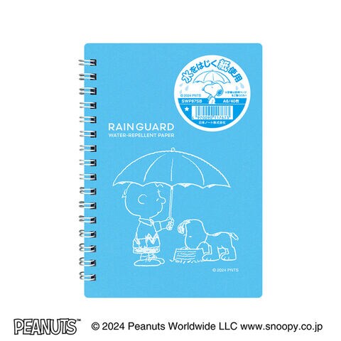 【1000円以上お買い上げで送料無料♪】スヌーピー レインガードメモ A6変形 スカイブルー 40枚 横罫 Wリング 撥水加工 キッチン アウトドア スポーツ 防災 日本ノート - メール便発送