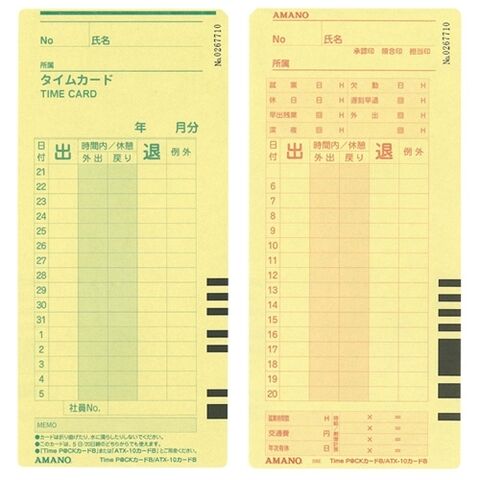 アマノ タイムカード TIME P@CKカードB 20日締/5日締 100枚
