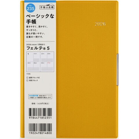 高橋書店 2026年 手帳・ダイアリー (235) フェルテ5 B6 イエロー 見開き1週間