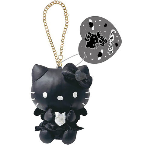 ハローキティ 合皮マスコットチャーム ブラック チェーン付 ハート型 キラキラジュエル モノトーン 大人かわいい NIC