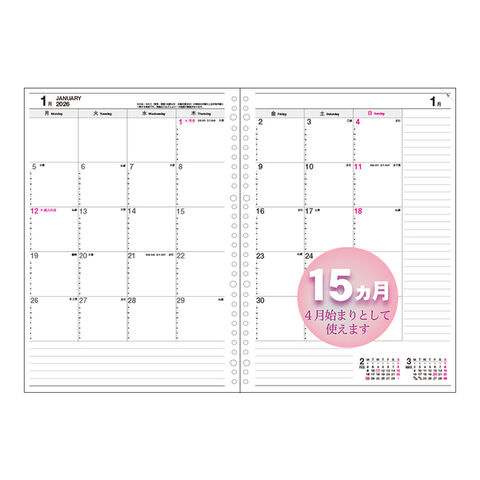 見開き1ヶ月ブロックタイプ15ヶ月版