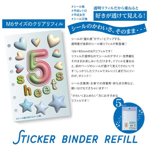 共栄プラスチック シール帳 リフィル M6サイズ 6穴タイプ 補充 シート 交換 シール 剥がせる 貼り直し