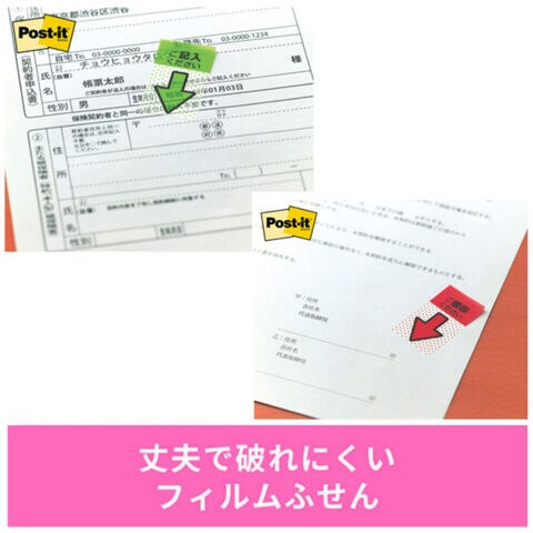 ビジネスでよく使われるワードがあらかじめ印字されており、書く手間が省けます。丈夫で繰り返し使用できるフィルム素材を採用。