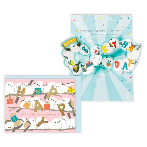 誕生お祝い 立体カード ゆるアニマル シマエナガ ポップアップ バースデー メッセージ かわいい ミドリ