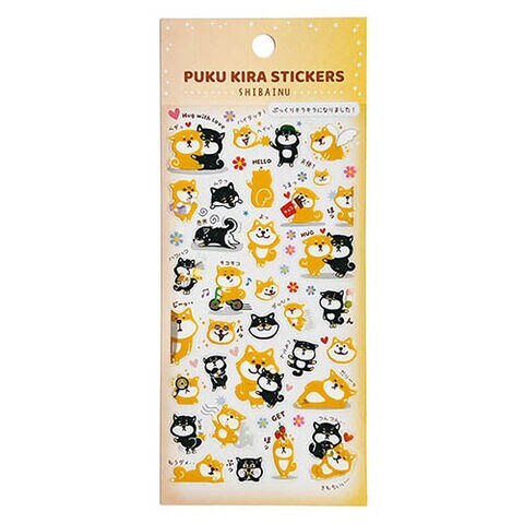 【1000円以上お買い上げで送料無料♪】ぷくキラシール 柴いぬ イヌ 犬 わんこ ステッカー 手帳 デコレーション かわいい パインブック - メール便発送