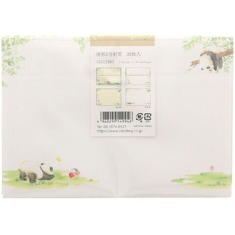 ぱんだ柄 封筒 2柄×各10枚 洋形2号 CGLE1057 ボリューム 手紙 レター 定形 パンダ かわいい 日本製 クリエイトジー