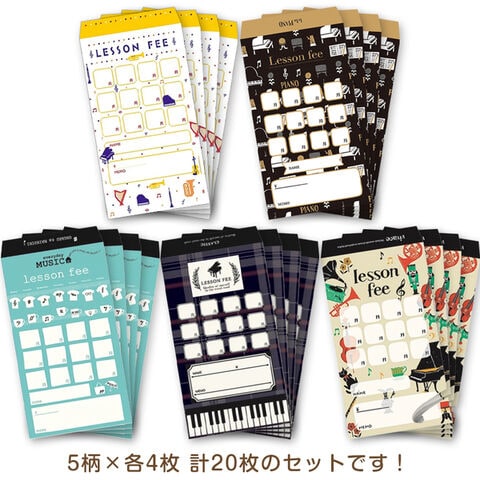 【5柄×各4枚 計20枚セット】 月謝袋 Music ピアノ レッスン 集金 かわいい 習い事 家計簿 お金 管理 封筒