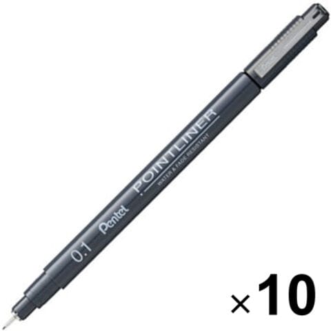 【送料無料】【10本セット】 水性顔料マーカー POINTLINER ポイントライナー 0.1mm 黒インキ 耐水 イラスト アート ぺんてる - メール便発送