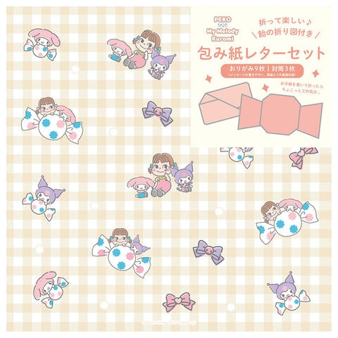 PEKO×サンリオキャラクターズ 包み紙レターセット B柄 ペコちゃん クロミ マイメロ 折り紙 便箋 かわいい 古川紙工