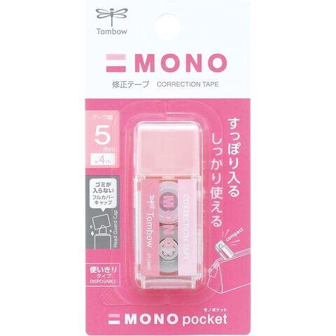 修正テープ MONO pocket モノポケット ピンク 5mm幅 4m巻 キャップ付 コンパクト 携帯 トンボ鉛筆