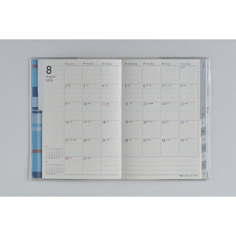 【月間予定表】月全体の予定が把握しやすいブロック式。シンプルで、抜群に見やすく書き込みやすいレイアウト。 【その他】各月の後ろに、横罫メモが付いているので、月間ページに書ききれなくても安心。