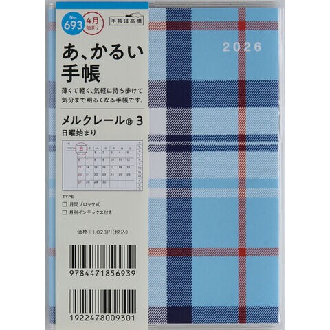 【送料無料】高橋書店 2026年 手帳・ダイアリー 3月始まり 【693】メルクレール3 A6 見開き1か月 チェック - メール便発送