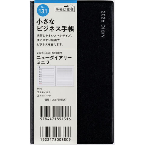 【送料無料】高橋書店 2026年 手帳・ダイアリー (131) ニューダイアリーミニ2 手帳判 黒 1週間+メモ - メール便発送