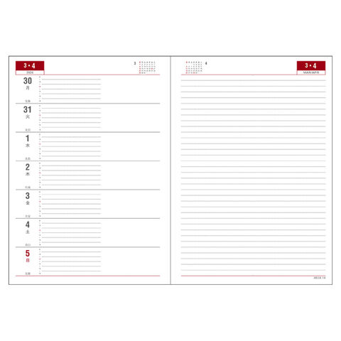 【レイアウト】1週間+横罫 ウィークリー 週間 レフト