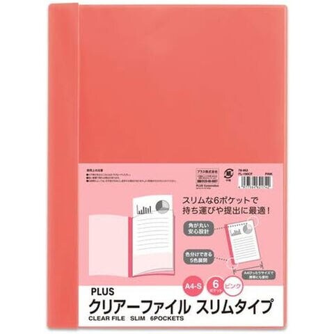 【1000円以上お買い上げで送料無料♪】プラス クリアーファイル スリムタイプ A4 6ポケット ピンク FL-190CF - メール便発送