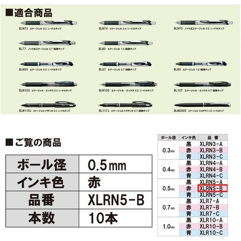 ぺんてる ボールペン替芯 エナージェル 0.5mm XLRN5 赤 10個セット
