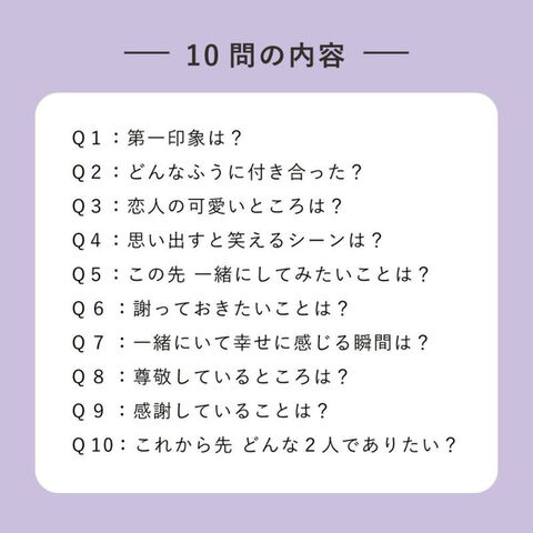 第一印象からすこし先のことまで、質問の答えを10枚のラブレターで贈る「Question LOVE LETTERS 10」です。