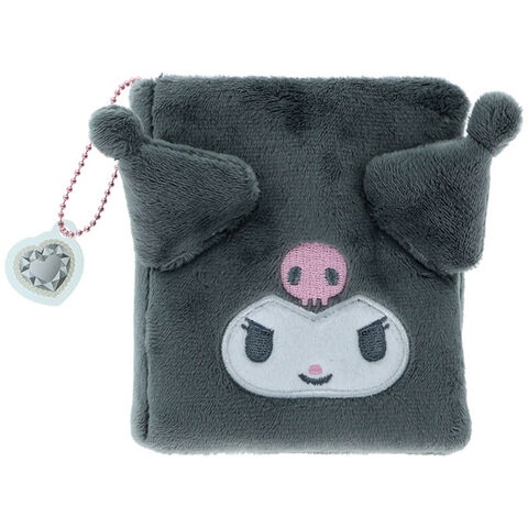 【送料無料】クロミ ボアトレカケース 16枚分 ブラック ハート型チャーム付 ぬいぐるみ 周年 人気 かわいい サンスター文具 - メール便発送