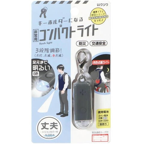 非常用 コンパクトライト ブラック LED 3段階調整 キーホルダー 緊急連絡カード付 コンパクト 防災 入学 通学 クツワ