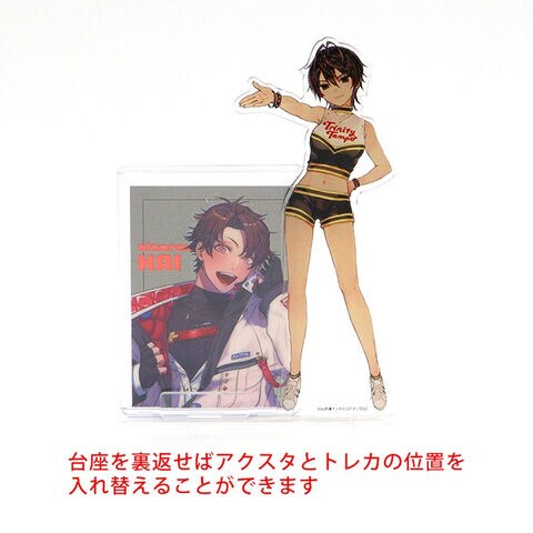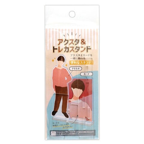 硬質ケースに入れたトレーディングカードとアクリルスタンドを