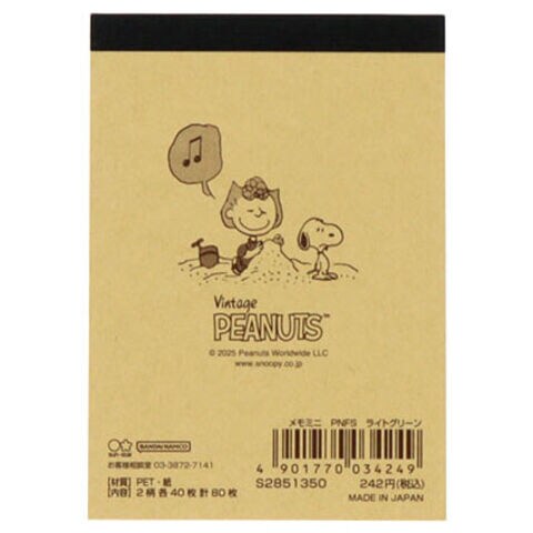 スヌーピー メモミニ ライトグリーン 2柄×各40枚 PET表紙 PEANUTS Favorite Story かわいい 日本製 サンスター文具