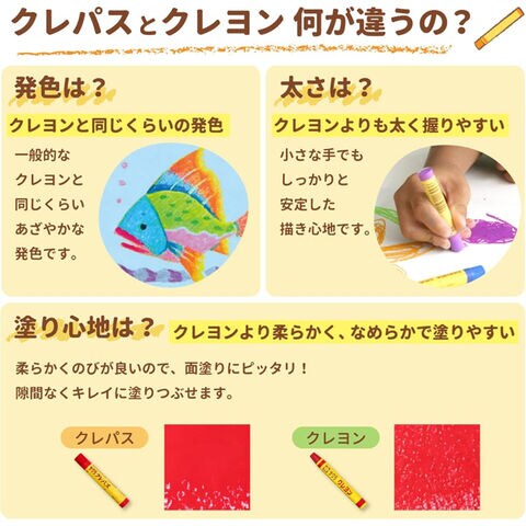 ・クレパスは、パステルの発色の良さとクレヨンの定着性のよさの特徴をいかして世界で 初めて当社で研究開発された世界に誇る描画材料(油性)です。