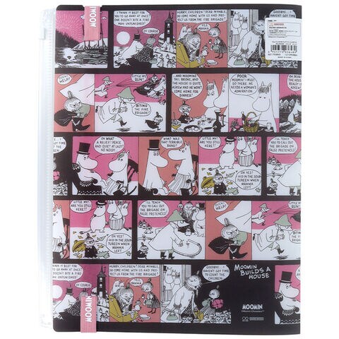 ムーミン ゴムバンド付きクリアファイル A4 5P+ファスナーポケット コミック ピンク Hyvaa Matkaa! 旅 北欧 かわいい