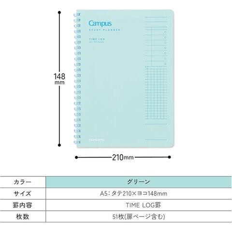 【1000円以上お買い上げで送料無料♪】 コクヨ キャンパス 時間管理がしっかりできる スタディプランナー TIME LOG A5 グリーン - メール便発送