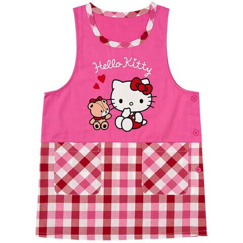 ハローキティ ラン型 エプロン 大人用 ショート丈 チュニック ポケット付 チェック柄 家事 キッチン かわいい サンリオ