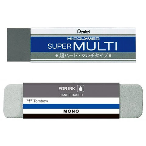 【1000円以上お買い上げで送料無料♪】ぺんてる スーパーマルチ消しゴム+トンボ鉛筆 インク用のモノ砂消しゴム ZEB20+ES-512B 2種2個組み - メール便発送