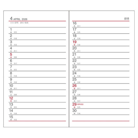 【付録】コーナーポケット・数え方一覧・贈答のエチケット・人生の記念日一覧・暦について・いざという時のための地震マニュアル・印紙税額一覧表・度量衡換算表・用紙サイズ一覧・年齢早見表・住所録・緊急連絡先メモ・鉛筆付き