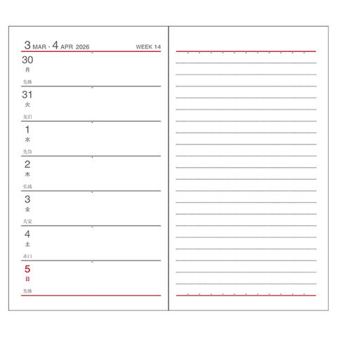 【レイアウト】1週間+横罫 ウィークリー 週間 レフト